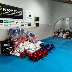 Esses materiais ajudarão os alunos e a equipe de competição com os treinamentos, principalmente os coletes eletrônicos, pois até então utilizávamos coletes convencionais. O treino com coletes eletrônico contribui efetivamente para o refino do atleta para a eficiência na pontução, pois no colete convencional o atleta não consegue saber se aquele chute seria contabilizado ou não, para cada peso há uma carga de força mínima que o alteta precisa atingir para que o golpe seja efetivado, e isso só é possível treinando com coletes eletrônicos.